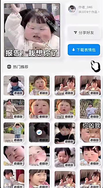 视频制作非常简单,先到抖音/快手搜索爆款素材,大家可以抖音上找到对标账号,找到之后,可以直接去里边找表情包,下载下来。